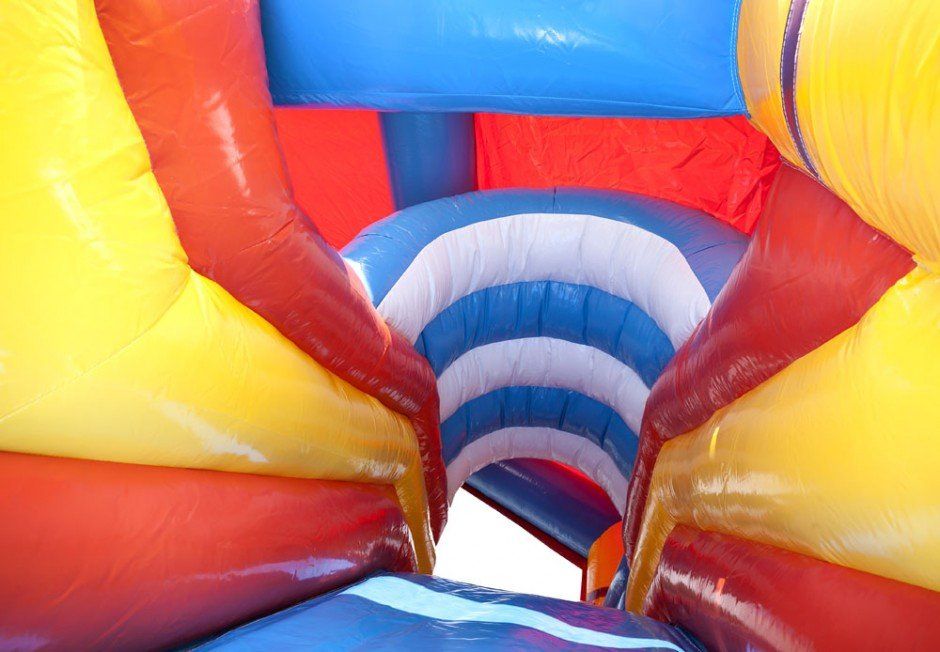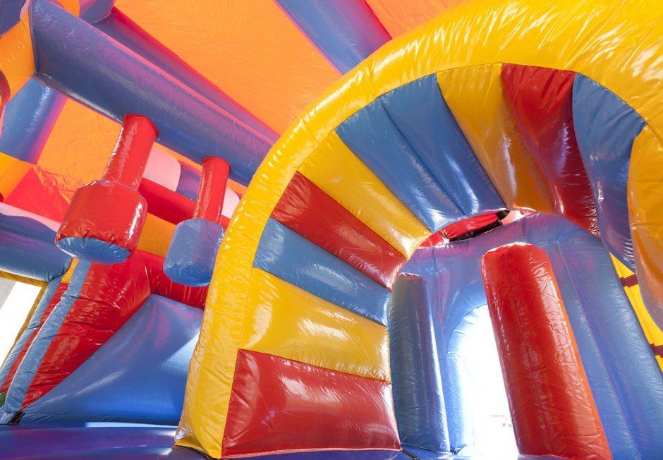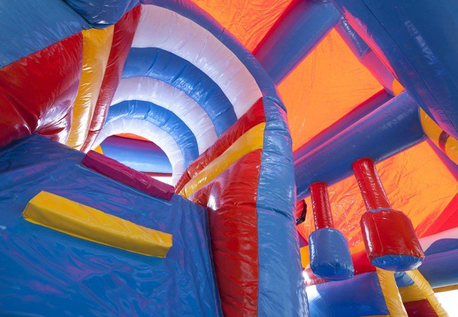Het overdekte multiplay springkussen is een uitgebreid springkussen met mooie obstakels waar de kinderen op, over en om heen kunnen springen en spelen.